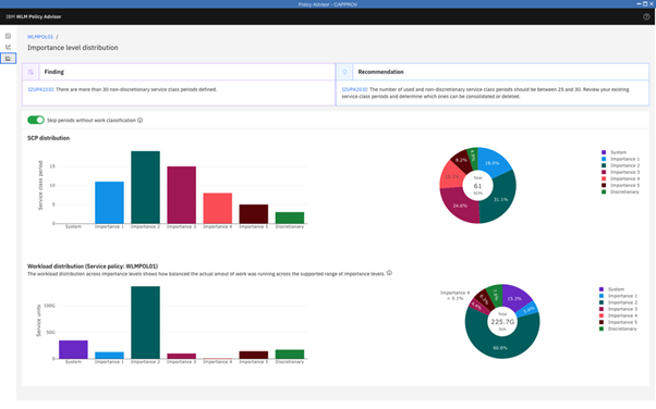 The WLM Policy Advisor is a tool designed to enable in-depth exploration of your WLM policy and help z/OS system administrators optimize the performance of workloads. By analyzing system performance data and workload characteristics, Policy Advisor offers insights into best practices for policy configuration and supports new-to-Z professionals with recommendations and suggestions.